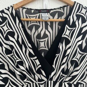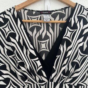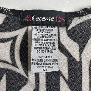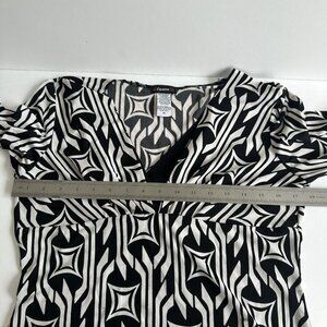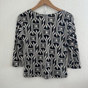 Cocomo Shirt Womens Medium Black White Geometric Pattern 3/4 Sleeve Stretch Top