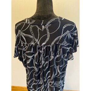 Cocomo Blouse Plus Size 2X Black White Pattern Flutter Sleeve + Stretch Top