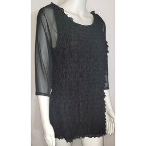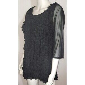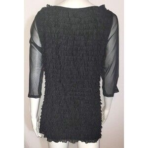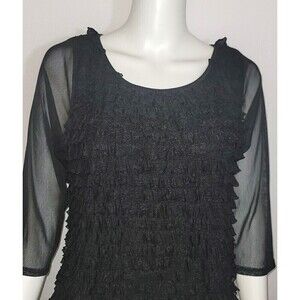 Cocomo Layered Tiered Ruffled Blouse Black with sheer sleeves Ruffled tiers are so slimming the added length makes it perfect with leggings or jeans of any color!