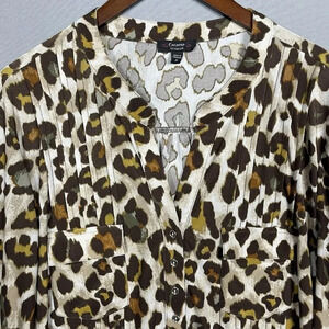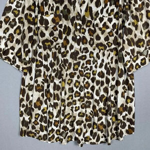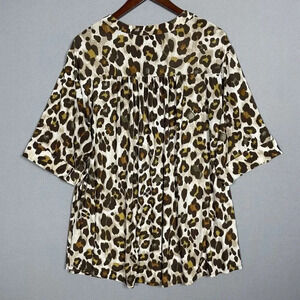 Cocomo Leopard Tunic Top Popover Size 3X Pleats Stretch Slinky Roll Tab Sleeves