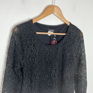 Cocomo Mesh Fishnet Metallic Top Black Womens Small Sheer Sparkly