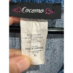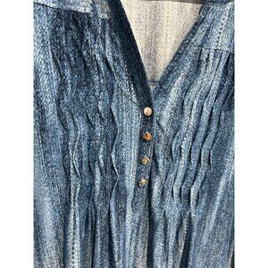 Cocomo Pleated Top Blue Sz XL Roll Tab Sleeve Abstract Pintuck Office Wear