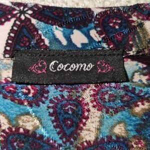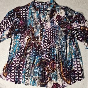 Cocomo Plus Size Pullover Vneck with button Blouse Stretchy Abstract print top