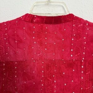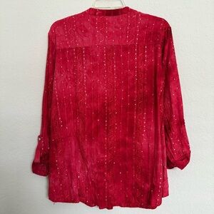 Cocomo Red Pintuck Sequin Popover Blouse Plus Size 2X Roll Tab Sleeves Boho