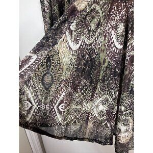 Cocomo Sheer Floral Top 2X Green Boho Western Hippie Indie Concert Resort Artsy