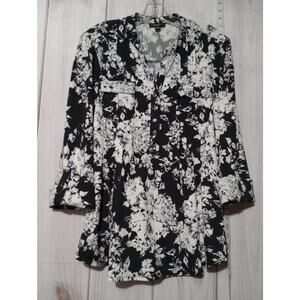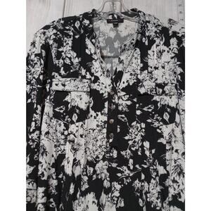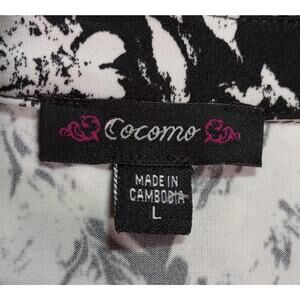 Cocomo Shirt Womens Large Black White Floral Button Front Long Sleeve Lightweight