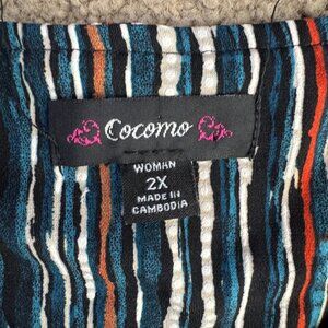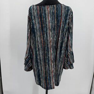 Cocomo Striped Tunic Top Womens 2X Bell Sleeve Stretch Multicolor Comfort Party