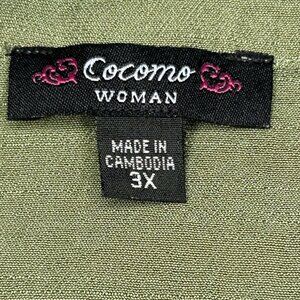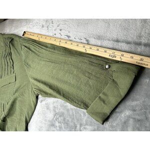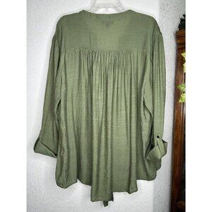 Cocomo Top 3X Green Pintuck Pleat Tie Front 3/4 Roll Tab Lightweight Plus Casual