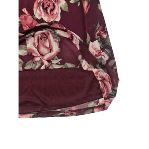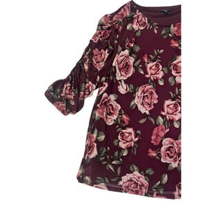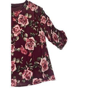 Cocomo Top Women 2X Red Round Neck Floral Pullover Stretch Roses Feminine Ruched