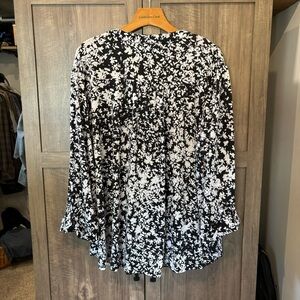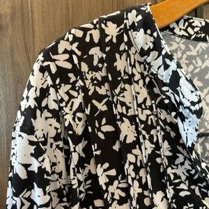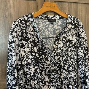 Cocomo Woman 3X Top Black White Floral Stretch Henley Long Roll Tab Sleeves