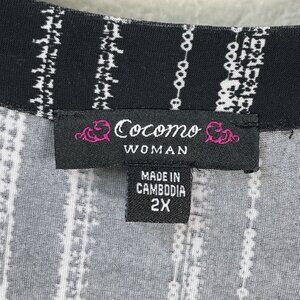 Cocomo Woman Plus 2X Black White Striped Tunic Blouse Stretch Roll Tab Sleeve