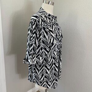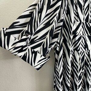 Cocomo Woman Plus 3X Black White Stretch Tunic Top Roll Tab Sleeve Shirt Blouse