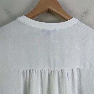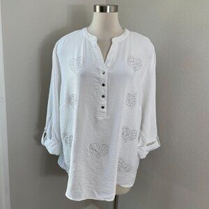 Cocomo Woman Plus 3X White Heart Print Tunic Top Blouse Roll Tab Sleeve Shirt