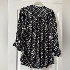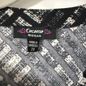 Cocomo Woman Tunic Blouse โ Black & White Print, Size 2X