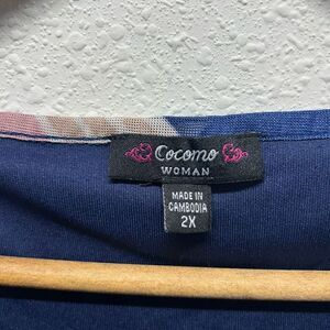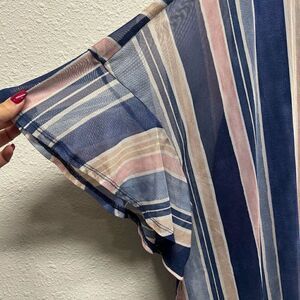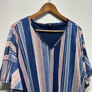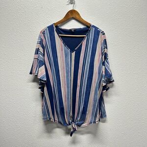 Cocomo Women’s Blue Pink Striped Tie Front Ruffle Sleeve V Neck Top Size 2X