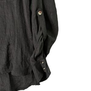 This Cocomo button-up shirt is a stylish addition to any wardrobe. Featuring a solid pattern and collared neckline, it is perfect for casual occasions. The long roll tab sleeves and button closure make it easy to wear and care for. Made from a blend of polyester and rayon, this black shirt is machine washable and suitable for all seasons.