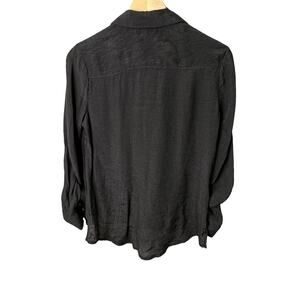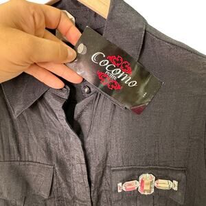 Cocomo Womens Petite L Sheer Black Button-Up Shirt Rhinestone Long Sleeve