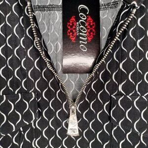 Cocomo Women's Plus Size 1X Black & White Geo Print Pintuck Short Sleeve Top
