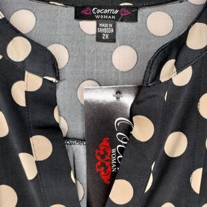 Cocomo Women's Plus Size 2X Black & Tan Polka Dot Pintuck 3/4 Sleeve Top