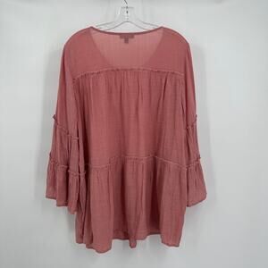 Cocomo Womens Pullover Top Size 2X Mauve Tiered Bell Sleeve Scoop Neck Peasant