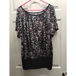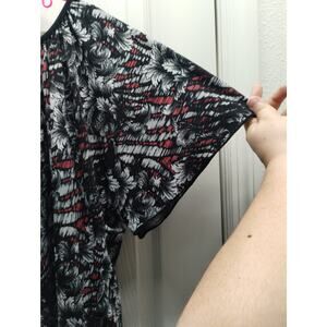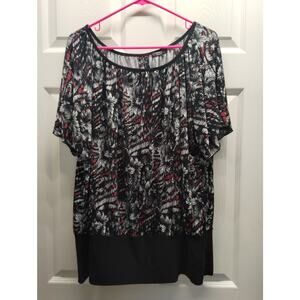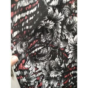 Cocomo Women's Size 2X Black Red Leaf Baroque Scrollwork Short Sleeve Blouse