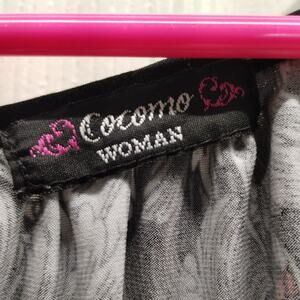 Cocomo Women's Size Black Red Leaf Baroque Scrollwork Short Sleeve Blouse