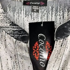 Cocomo Women's Size XL Black Ivory Multi Color Geo Print Pintuck 3/4 Sleeve Top