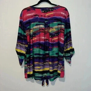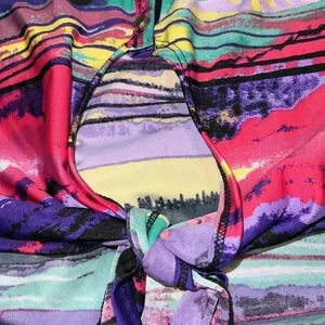 Cocomo Women’s Top Green Striped Stretch Colorful Y2K Tie Front