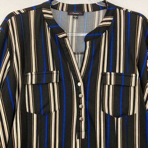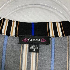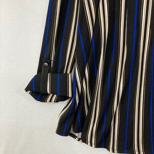 Cocomo size XL Multi Striped Split Neck Stretch Rolled Sleeve Knit Top Office