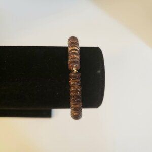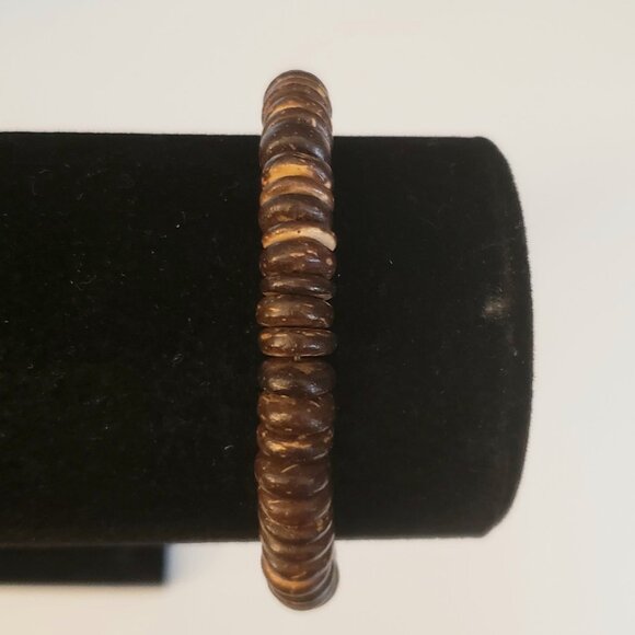 Coconut Shell Bracelet Beaded Elastic Cord Stretchy Brown Tan Beachy
