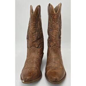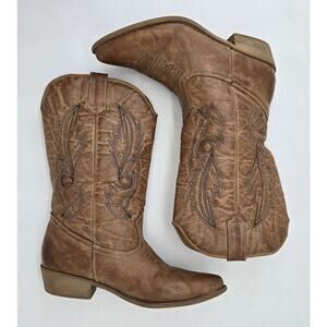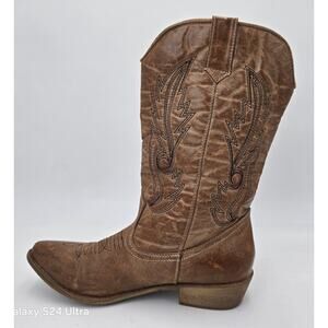 Coconuts Brown Western Boots Brown Faux Leather Embroidered Cowgirl Women's 7M