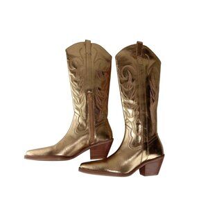 Coconuts By Matisse Agency Gold Tall Western Cowboy Boots Women's Size 6M