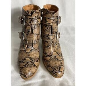 Coconuts By Matisse Helga Snakeskin Booties Brown Black Size 10 M Buckle Heels