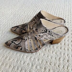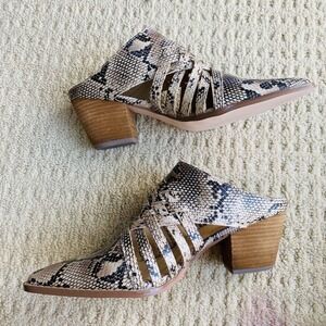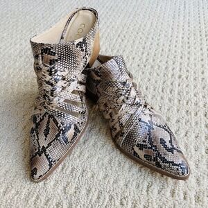 Coconuts By Matisse High Heel Mule Faux Python Upper Cut Outs Pointy Toes 8.5M