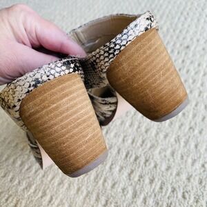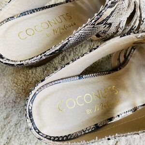 Elevate your outfit with these stylish Coconuts By Matisse High Heel Mules. Faux Python uppers with cut outs, pointy toes and stacked wood high heels. In ladies US size 8.5M - these stylish shoes are perfect to pair with your favorite jeans and offer comfortable fit that will keep you on your feet all day. These are in excellent condition - could be mistaken for brand new - ready to wear and absolutely stunning!