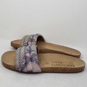 Coconuts By Matisse Multi Color Snake Print Leather Slides Sandels Sz 9