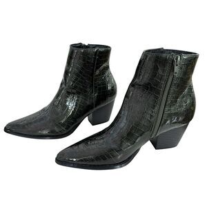 Coconuts By Matisse Pointed Toe Bootie 6 Dark Green Shimmer Embossed Faux Croc