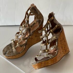 Coconuts Womens Wedge Sandals Platform Heels Gold Studs Cork Snakeskin, Sz 8M