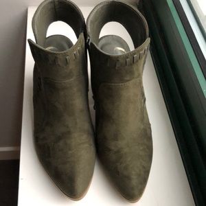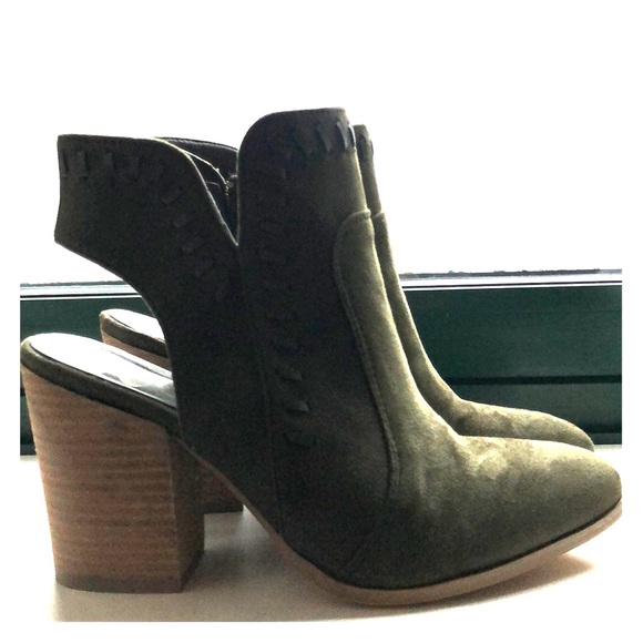 Never warn green coconuts booties with open heel. A tiny water stain on right wedge