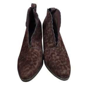 Coconuts by Matisse Addie Leopard Scallop Ankle Boot Booties Brown Sz 7.5