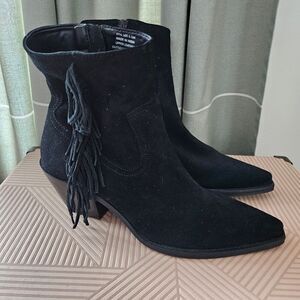 Coconuts by Matisse Booties Ankle Fringe Jane Black Suede Heeled Boots Casual