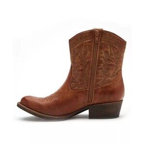 The Coconuts by Matisse Pistol Western Cowboy Cognac Boots in size 6 are a stylish and versatile choice for any casual or festival outfit. These brown faux leather boots feature a zip closure and a Western cowboy style, making them perfect for adding a touch of flair to your look. Whether you're heading to a concert, party, or just out for a casual day, these boots are sure to make a statement and provide both comfort and style.