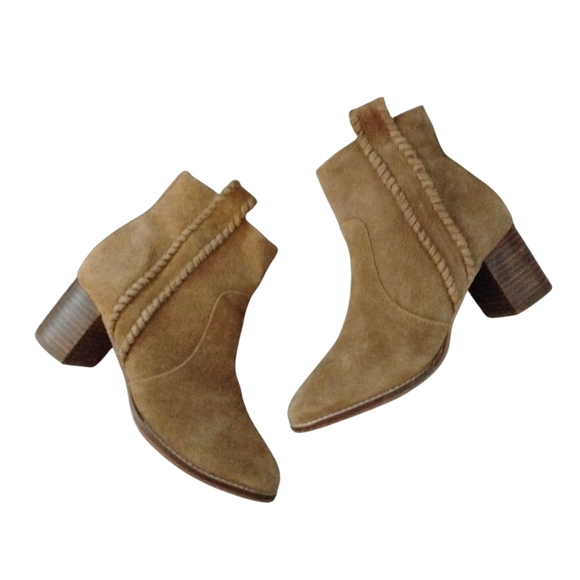 Coconuts by Matisse Tan Suede Ankle Boots Block Heel Booties Size 7.5