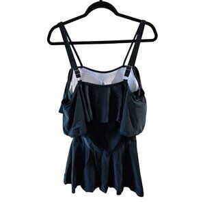 Cocopear Off-Shoulder Flounce Swimdress Black One-Piece Swimsuit Size Medium