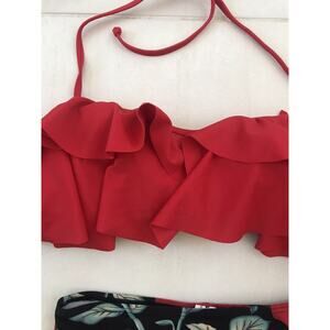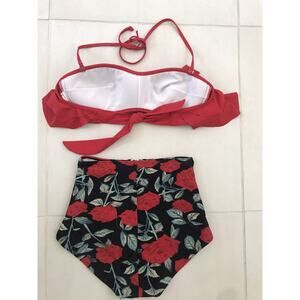 Cocoship Swim Ruffled High Waist Floral Bikini Set Swimsuit
