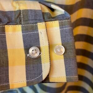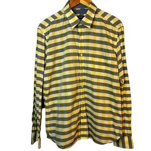 Code Authentic Casuals Button Up Stripe 100% Cotton Yellow Gray Preppy Mens Med.