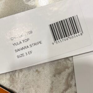 Brand new Yula bikini top from Code B in Sahara stripe. Adjustable straps and tie back.