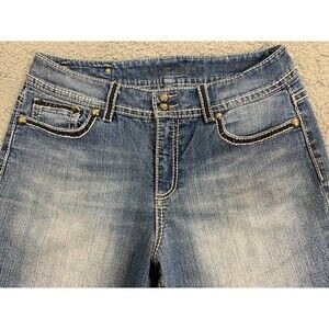 Code Bleu Regular 10 Capris Leg Split Denim Blue Jeans Embroidered 5 Pockets
