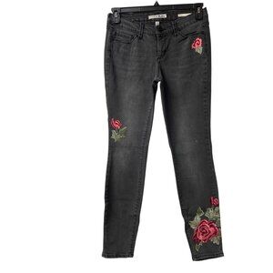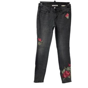 Code Bleu Womens Embroidered Rose Skinny Jeans Size 4 Black Denim