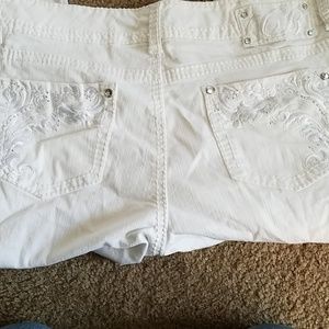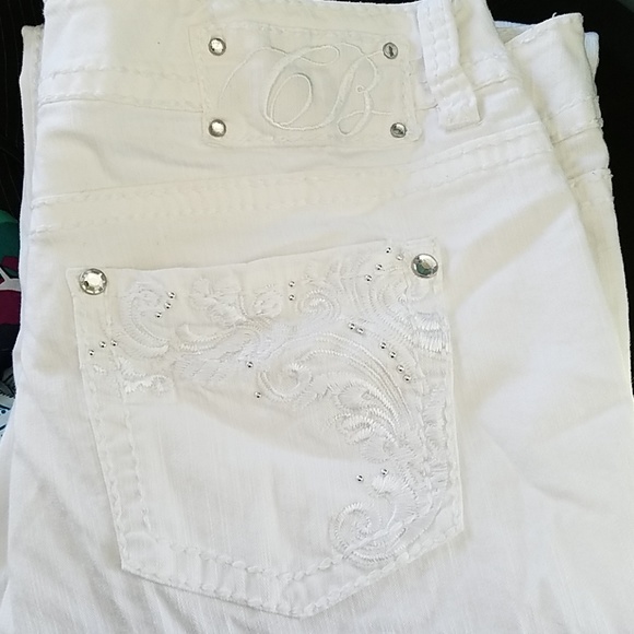 Very cute white coat blue pants sequins back pockets sequence front one pocket